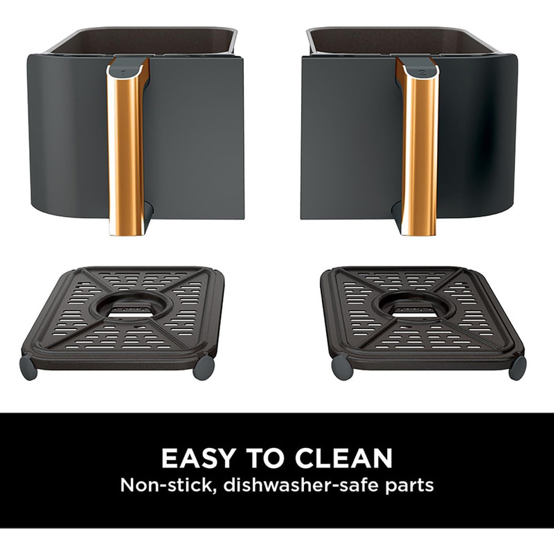⚙ سرخکن بدون روغن نینجا مدل AF400UKCP یک دستگاه پیشرفته با طراحی دوقلو است که امکان پخت همزمان دو نوع غذا با دما و زمان متفاوت را فراهم میسازد.
