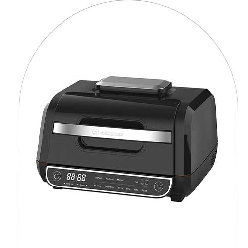 ⚙ سرخکن و گریل وستینگهاوس مدل WKMFCM203 یک دستگاه چندمنظوره با طراحی مشکی مدرن و عملکرد بدون روغن است.